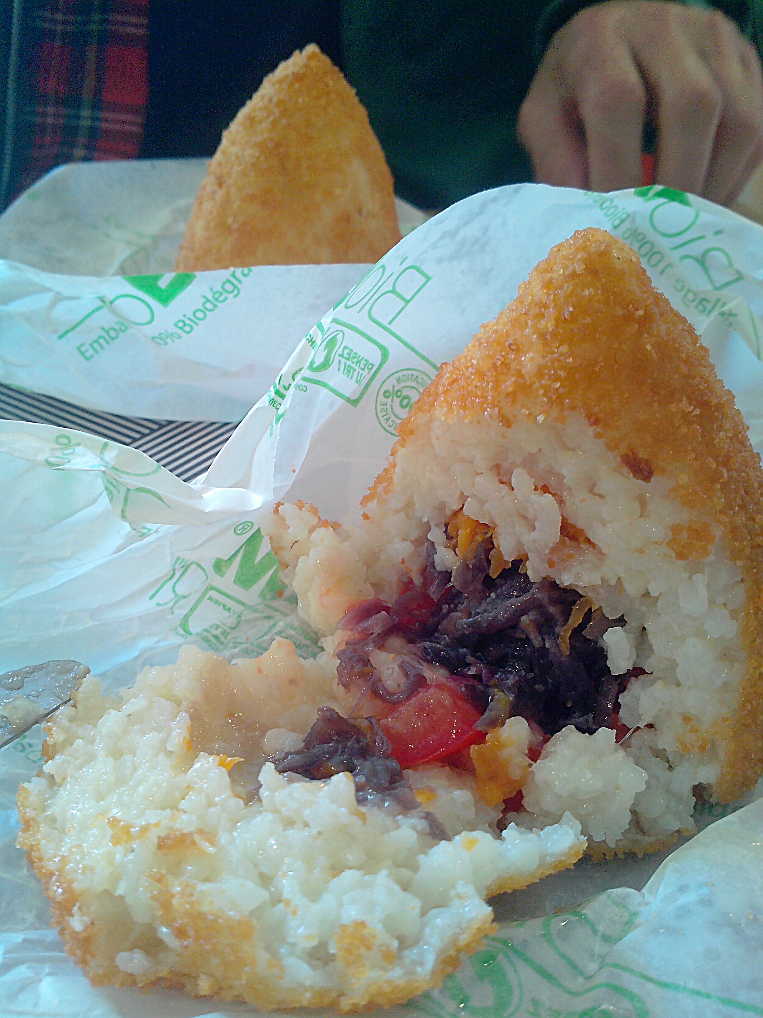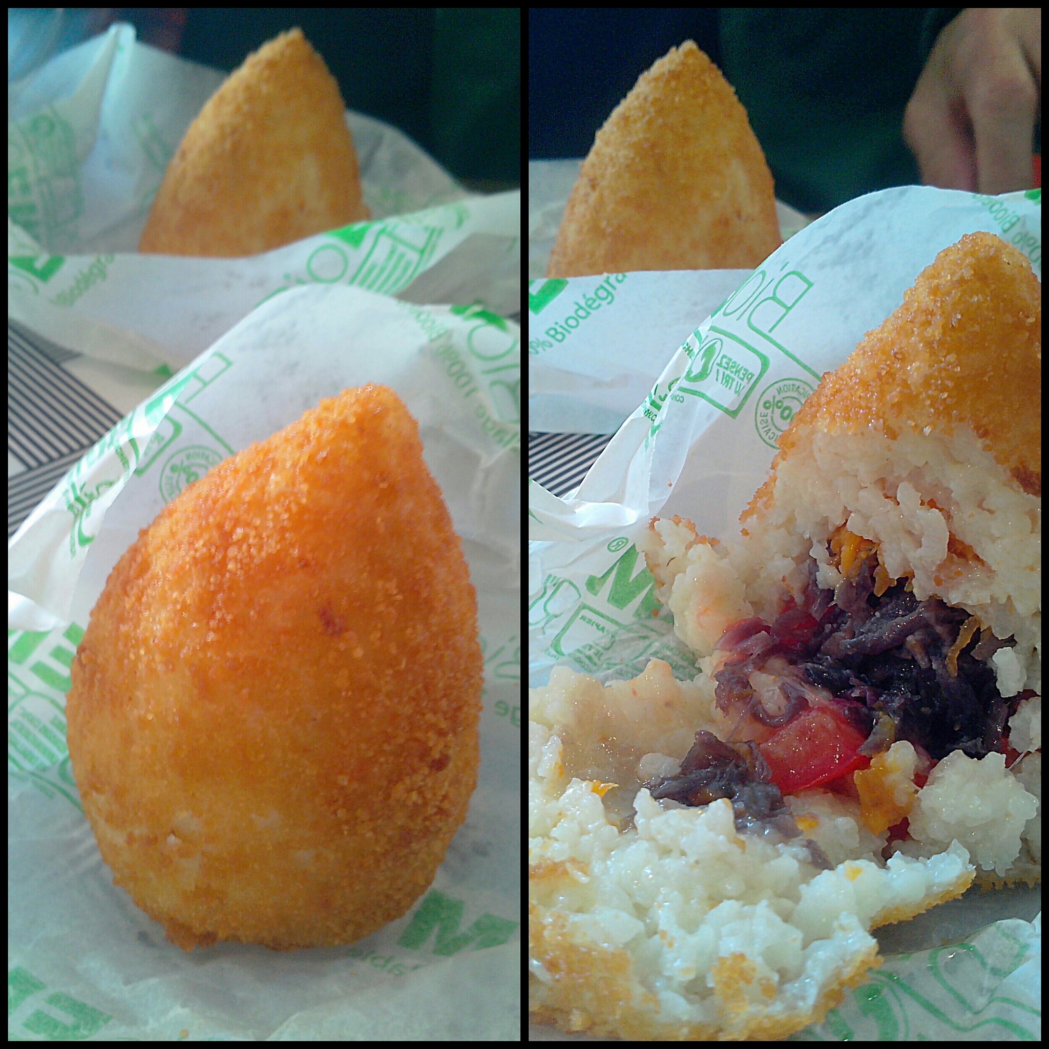 Les arancini, eux, sont plutôt siciliens, c’est le même principe de base que le suppli mais c’est plus grand, la plupart du temps en forme de cône, et dedans tu y trouveras plus de choses : viandes, légumes, fromages, poissons, etc…Il y en a donc pour tous les goûts, c’est commode, hein ?