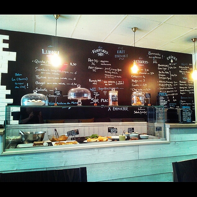 C’est un endroit agréable pour se poser, suffisamment spacieux, une cuisine locale, fraiche, où tout est fait maison, un carrot-cake à tomber (ah là là, le carrot-cake !!! love love love ! Dommage je ne retrouve plus mes photos du carrot-cake, pfff…), des cafés torréfiés (perso, je n’aime pas le café, donc je ne les ai jamais goûté, mais vous devriez essayer, vous , les amateurs de café !) ,une déco très cosy, un endroit paisible pour s’y poser un moment, une petite terrasse, du wifi, des prises de courant pour ton ordi ou pour recharger ton portable, des patronnes accueillantes, des tartes salées à la pâte sablée comme je les aime…