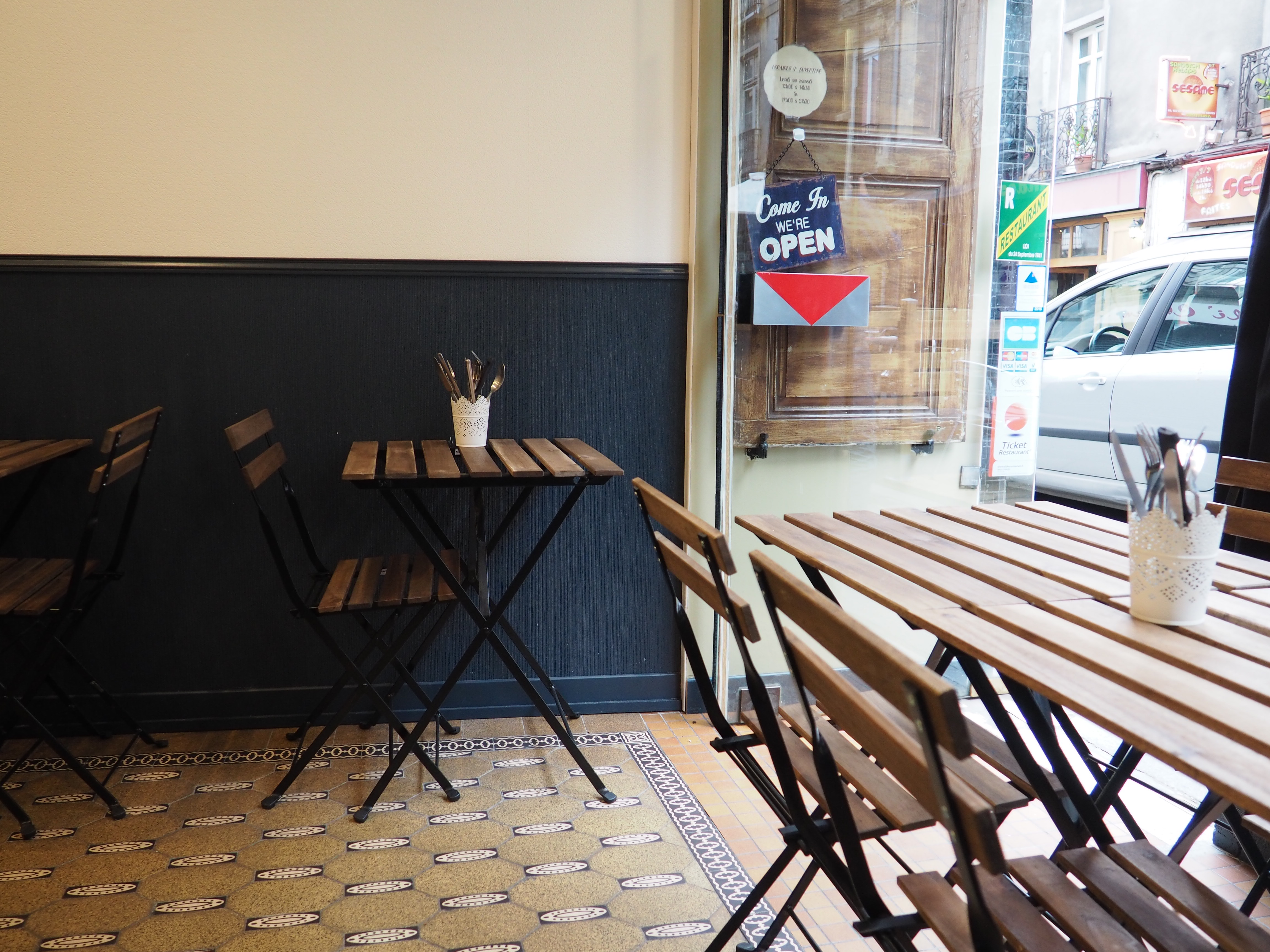 Bon, c’est tout petit, donc un peu dur pour les grandes tablées, il faudra choisir à emporter dans ces cas-là, mais déjà avec la terrasse, on gagne un peu de place.