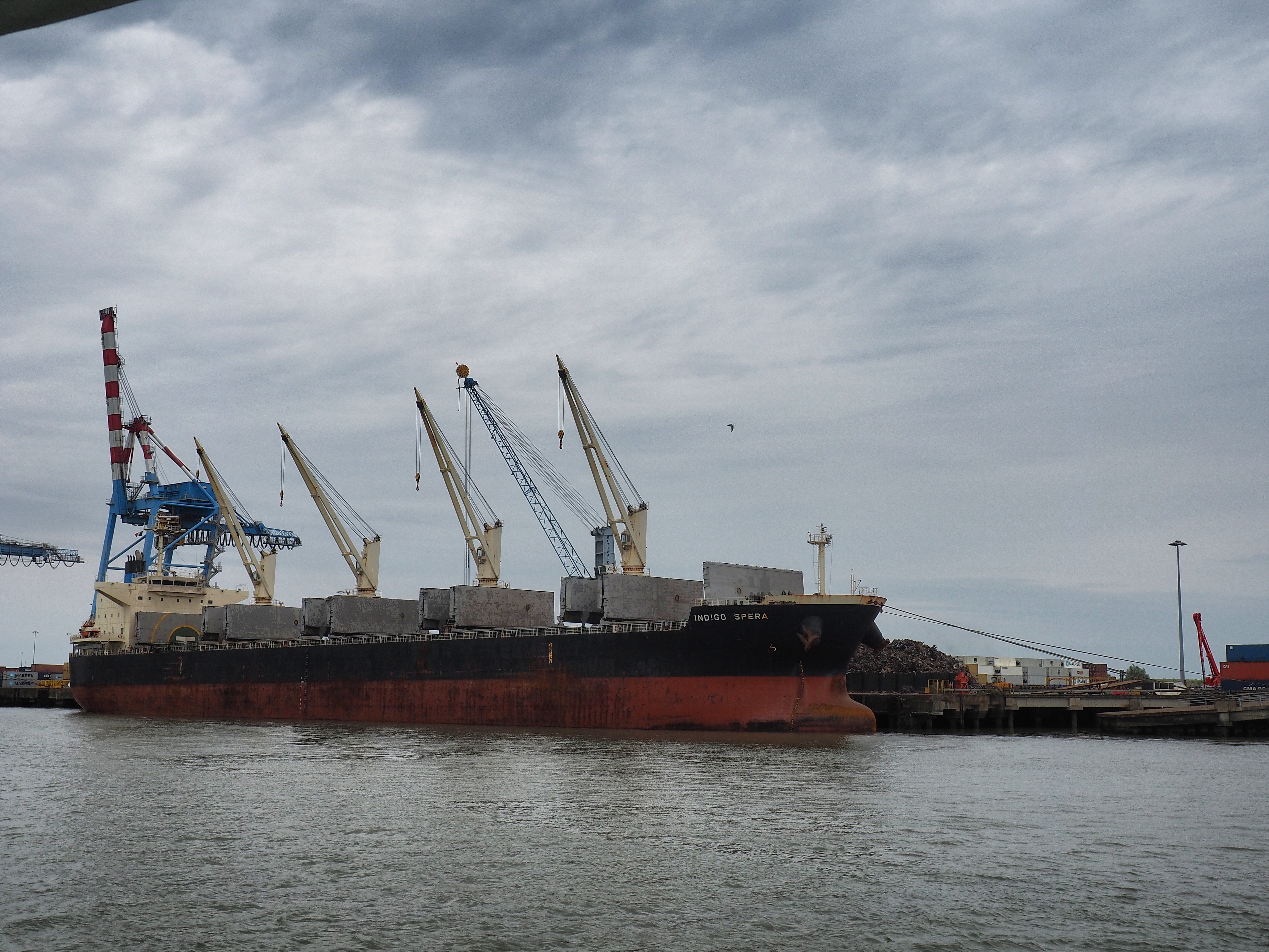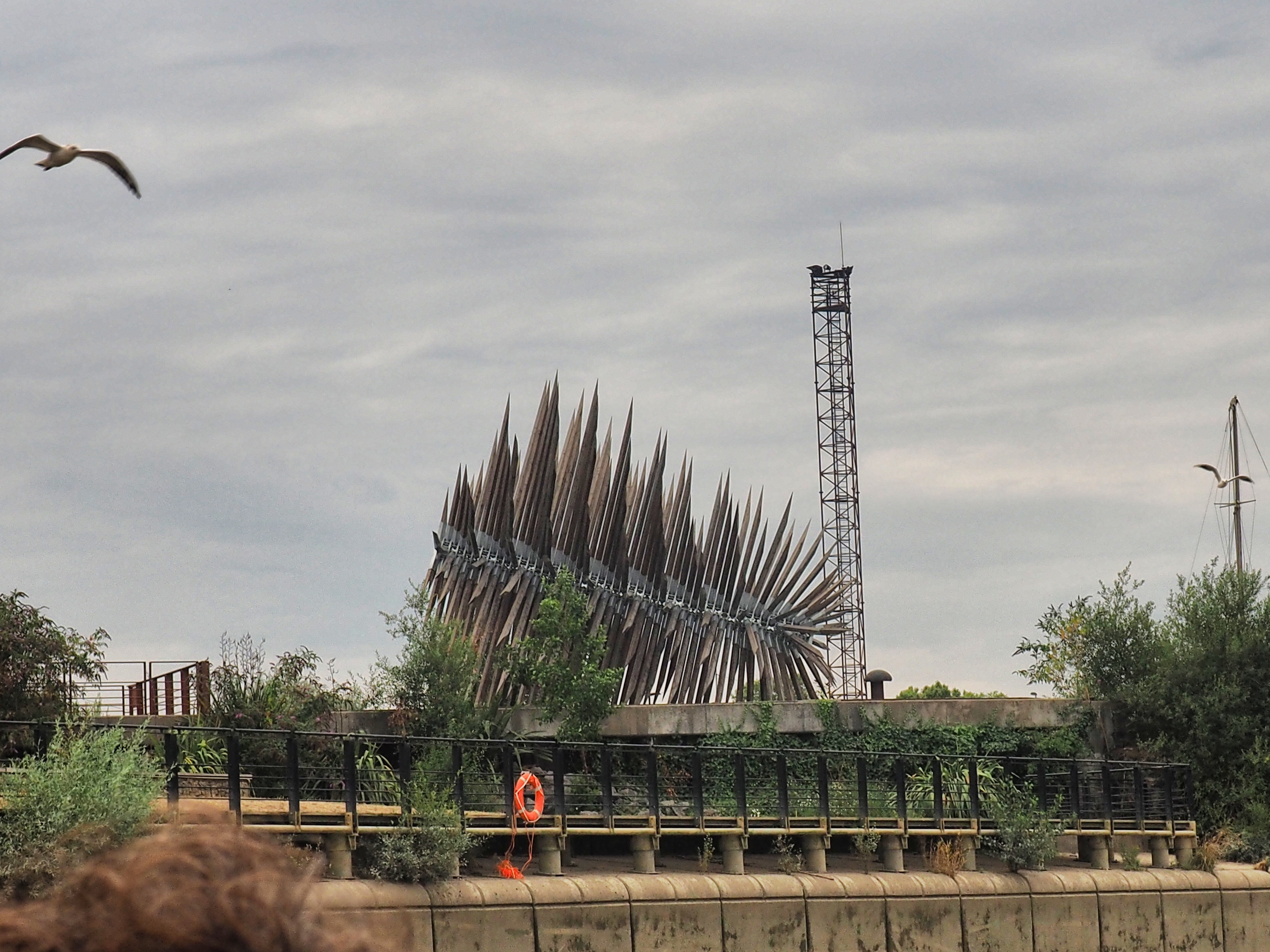 Bien sûr avec le bateau, on ne voit pas les 29 œuvres, mais on en voit quand même quelques-unes. On voit aussi très bien toute l’activité industrielle entre Nantes et Saint-Nazaire : charbon, ferraille, pétrole, électricité, containers….etc.