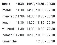 | sam.: | 12:00 – 15:00, 19:00 – 00:00 |