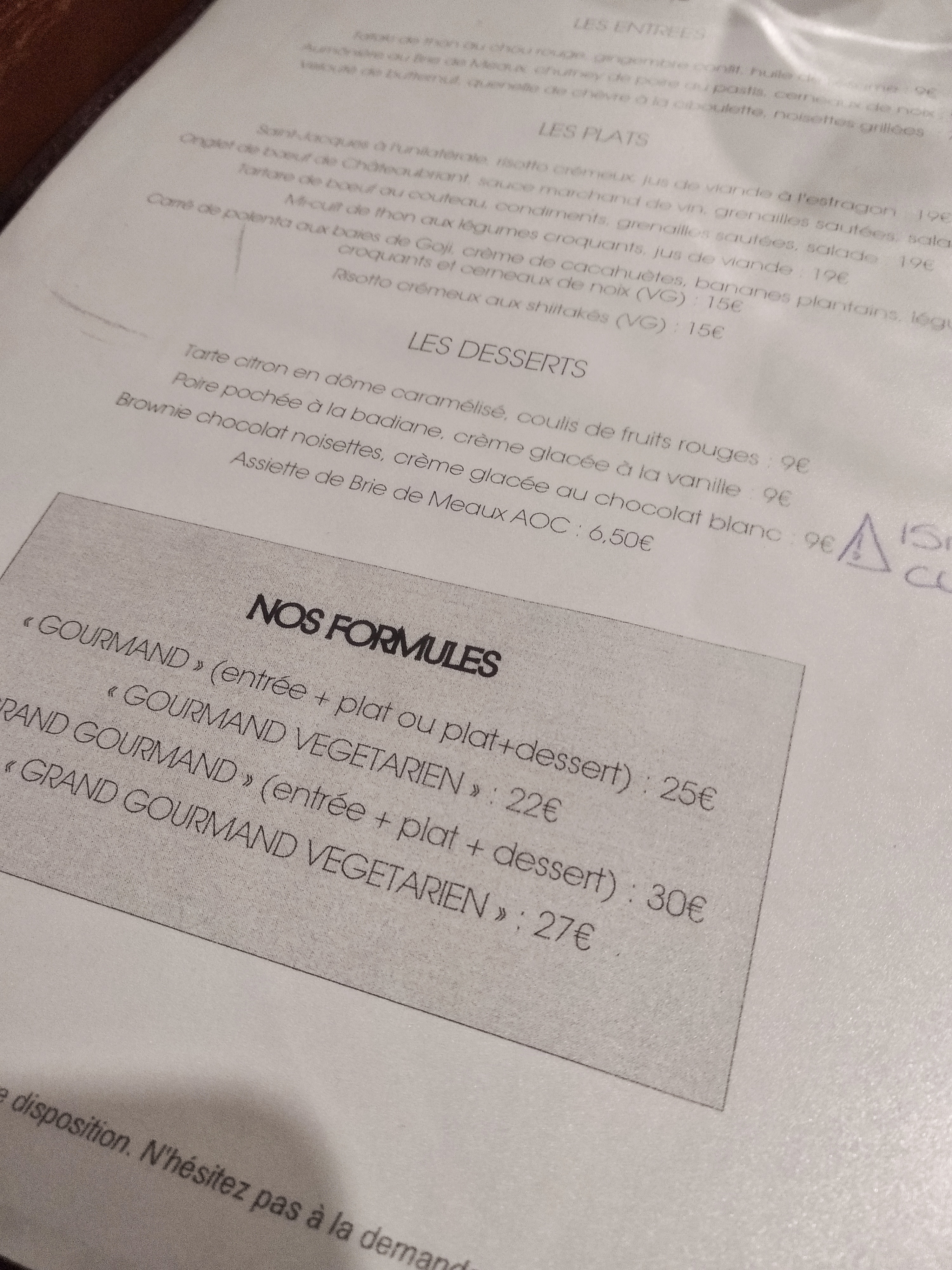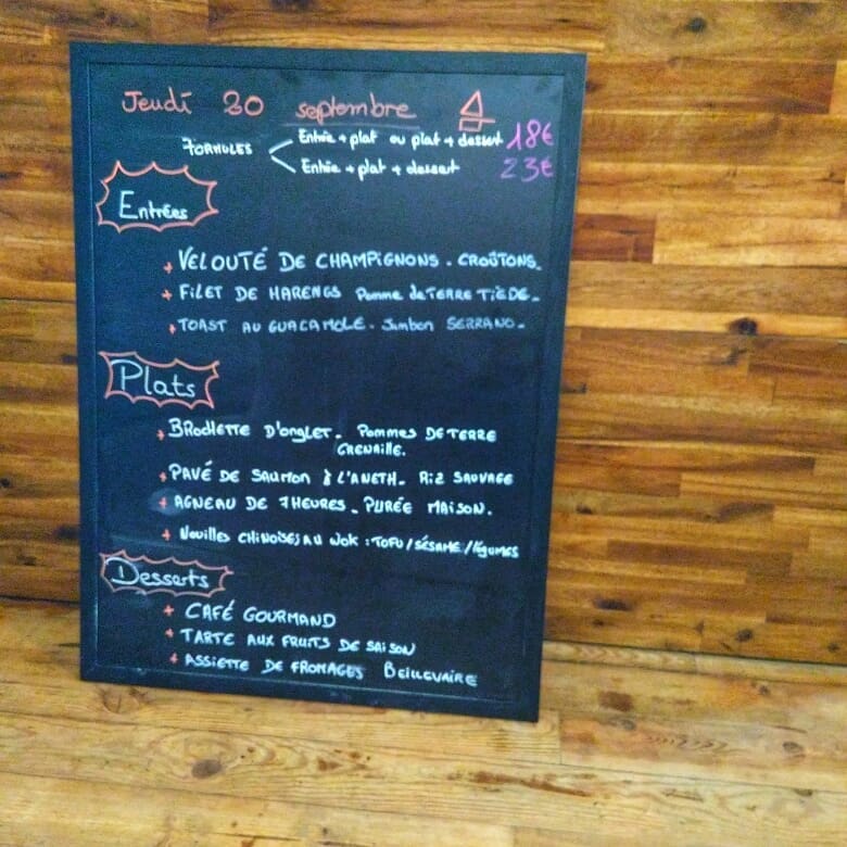 Et les lundis, l’ardoise est à petit prix : le menu est à 14 € avec entrée + plat et pour 1€ de plus, vous avez le dessert. Un bon plan pour les lundis, où beaucoup de restos sont fermés.