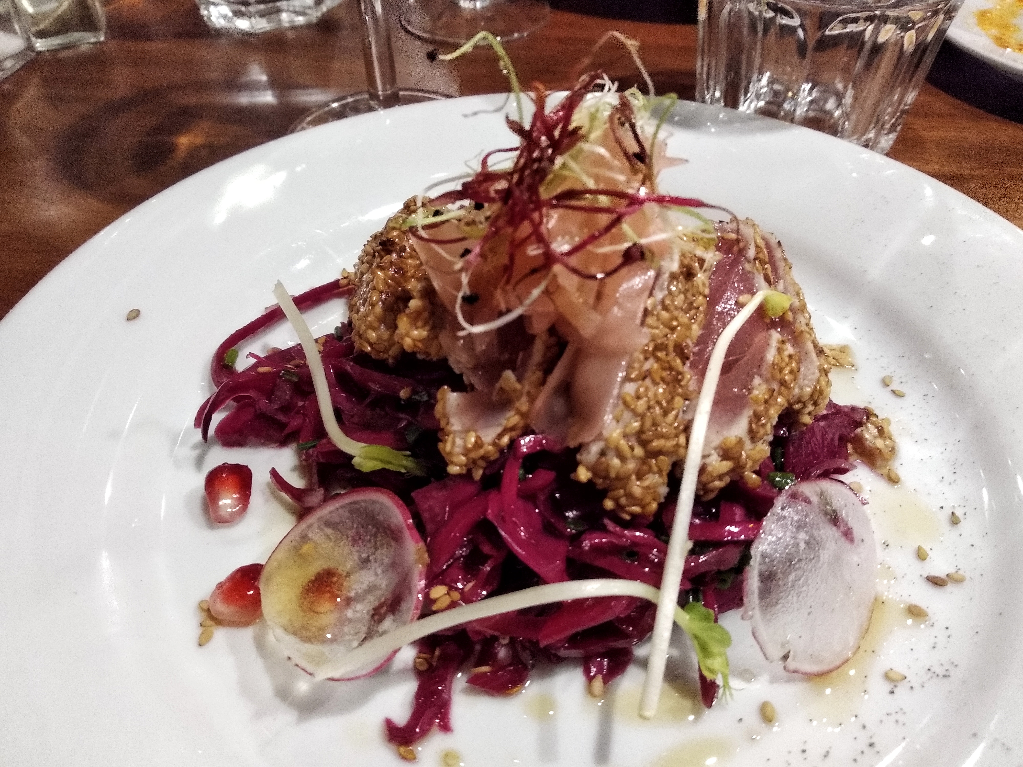 Et c’est vraiment une bonne idée, parce que qu’est-ce que c’est bon ! Et imaginatif ! Une carte réduite, là aussi (et oui, gage de qualité et de fait maison), et un service en continu le samedi (on peut venir après la grasse matinée, celle qui se termine bien après midi).