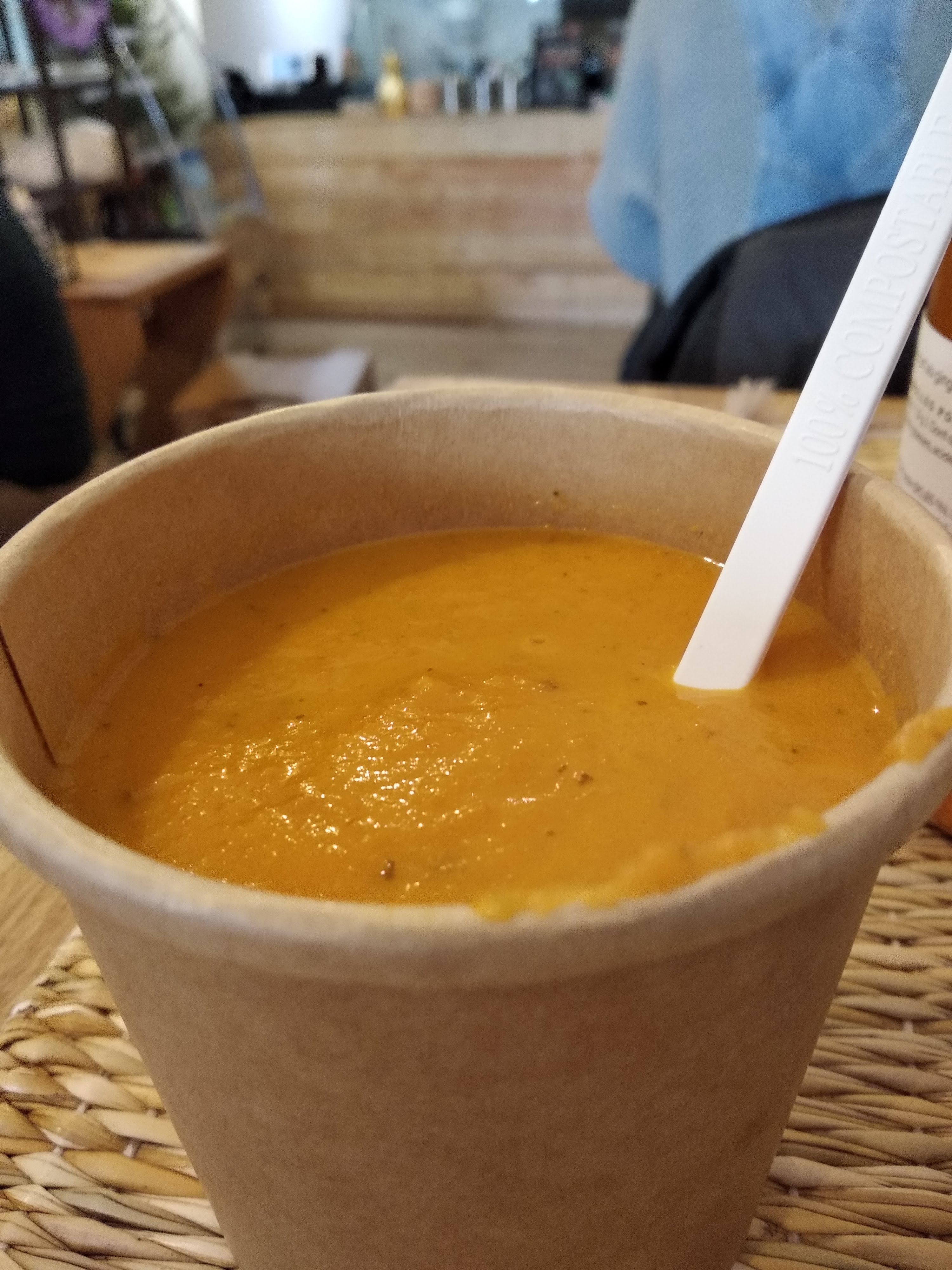 Deux tailles de bowls sont proposées, à vous de voir selon votre faim, mais avec un petit bowl, ça le fait aussi. N’hésitez pas à tester les soupes et les infusions du moment (faites maison toutes les 2).