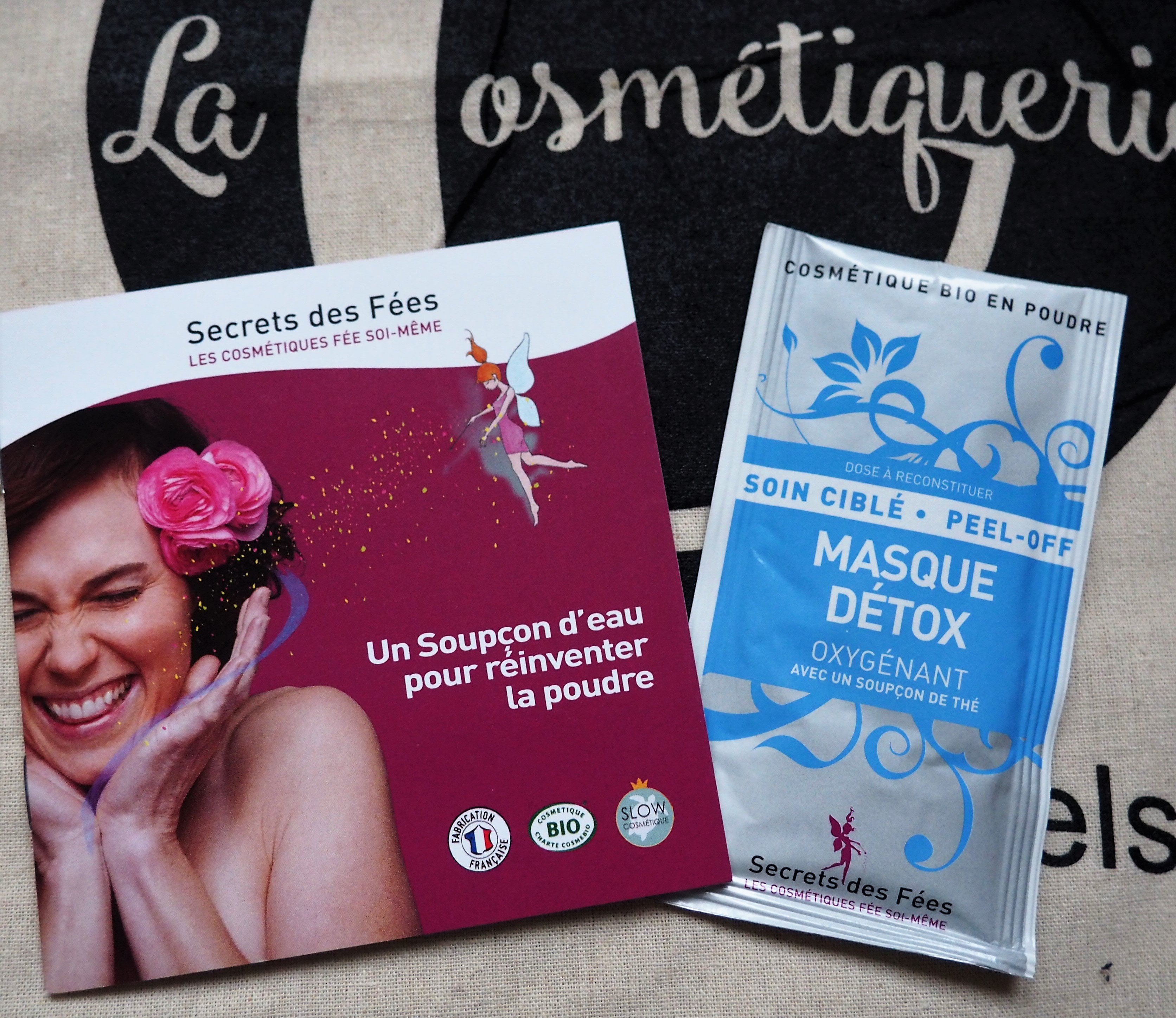 Deux masques en poudre (on n’en voit qu’un parce que j’ai offert l’autre à ma fille 😉), à mélanger avec de l’eau avant l’application, de la marque Secrets de Fées,