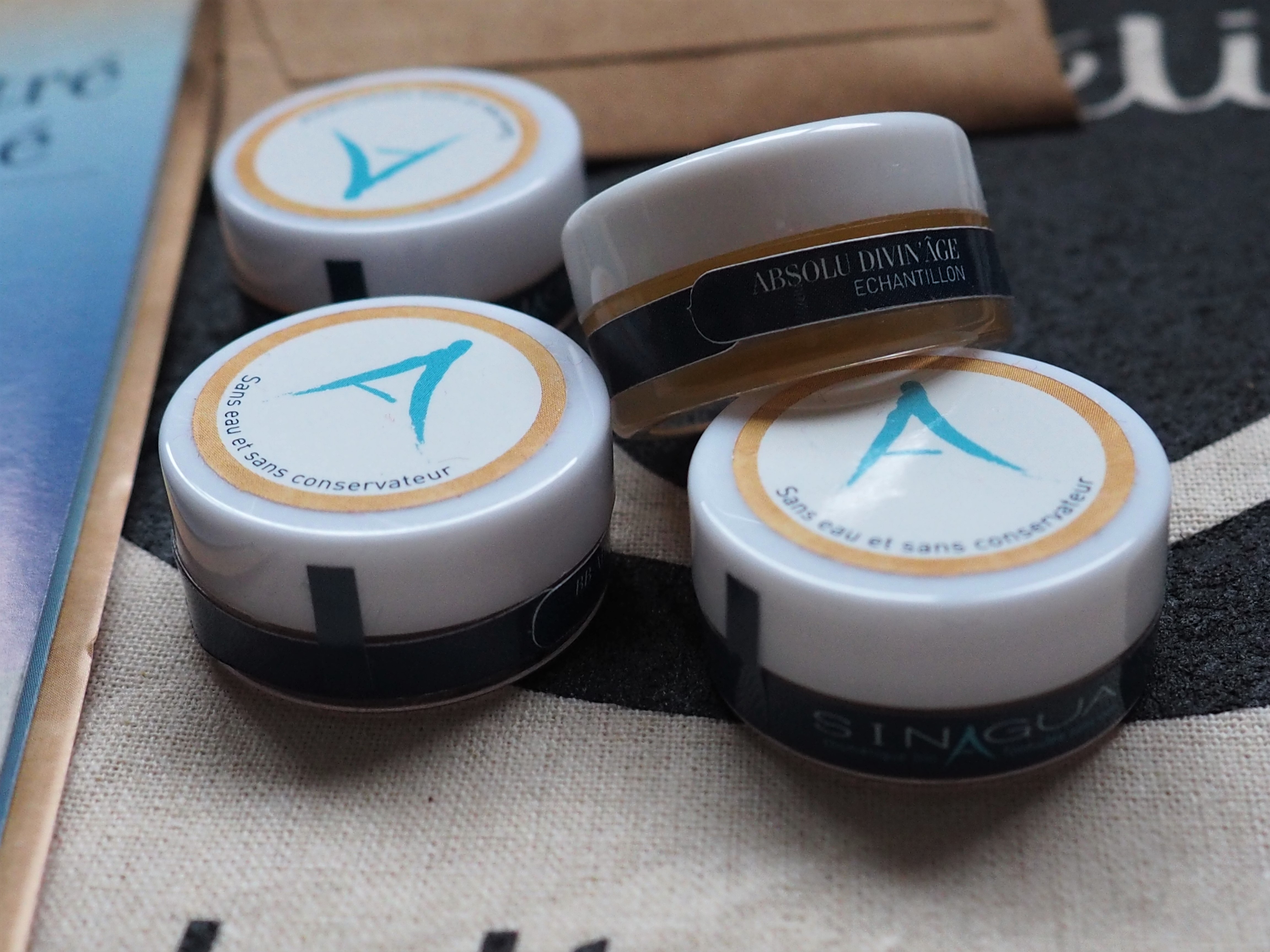 Et, une marque sur laquelle j’ai craqué, que je ne connaissais pas encore, Sinagua, et qui est nantaise, avec 4 échantillons : 2 de BB crèmes, 1 claire et 1 foncée ( ce sera la claire pour moi), un pour le contour de l’œil, et un anti-âge pour le visage.  Je pense que je vais aller m’acheter la BB crème et la crème anti-âge très bientôt.