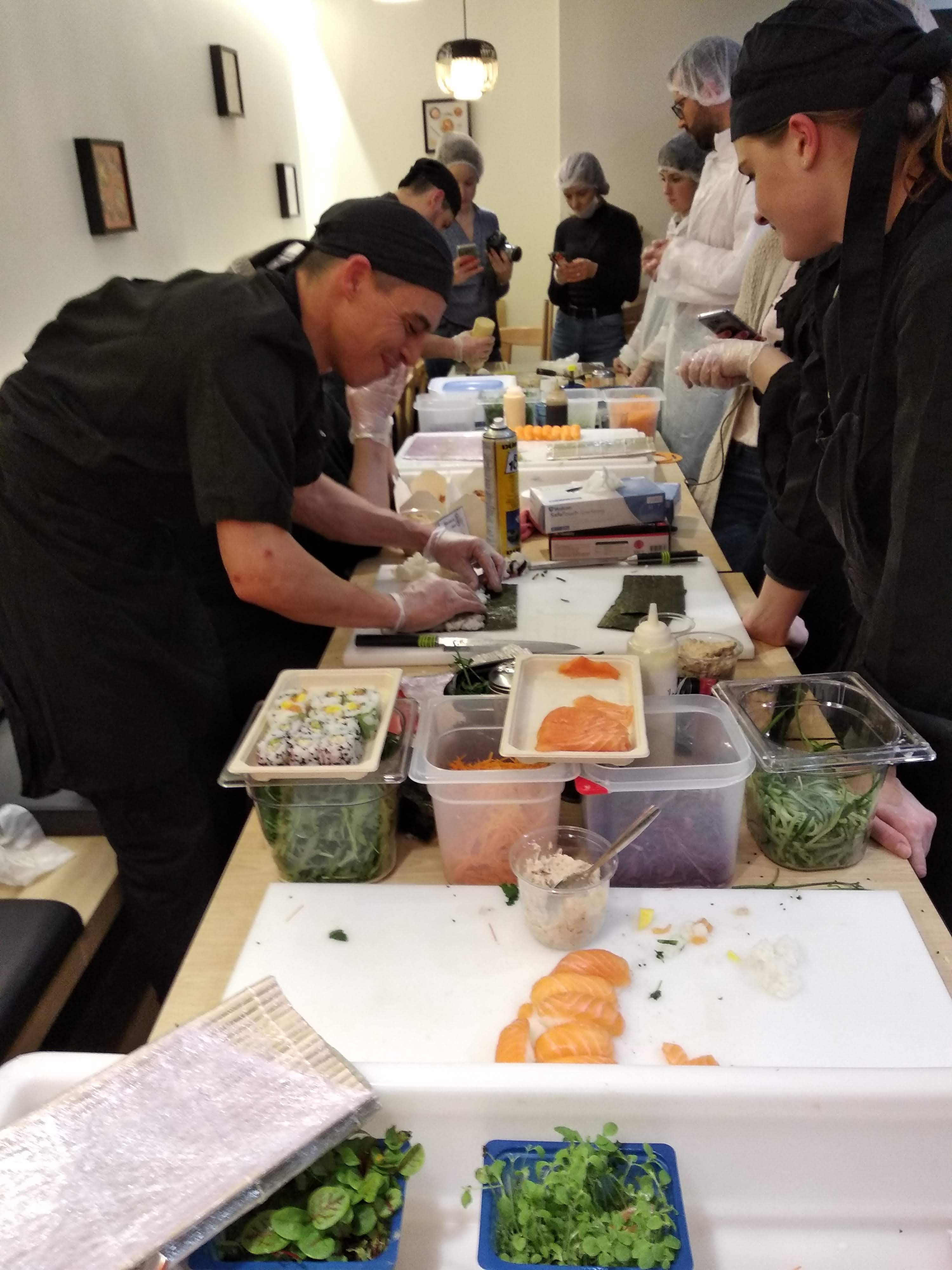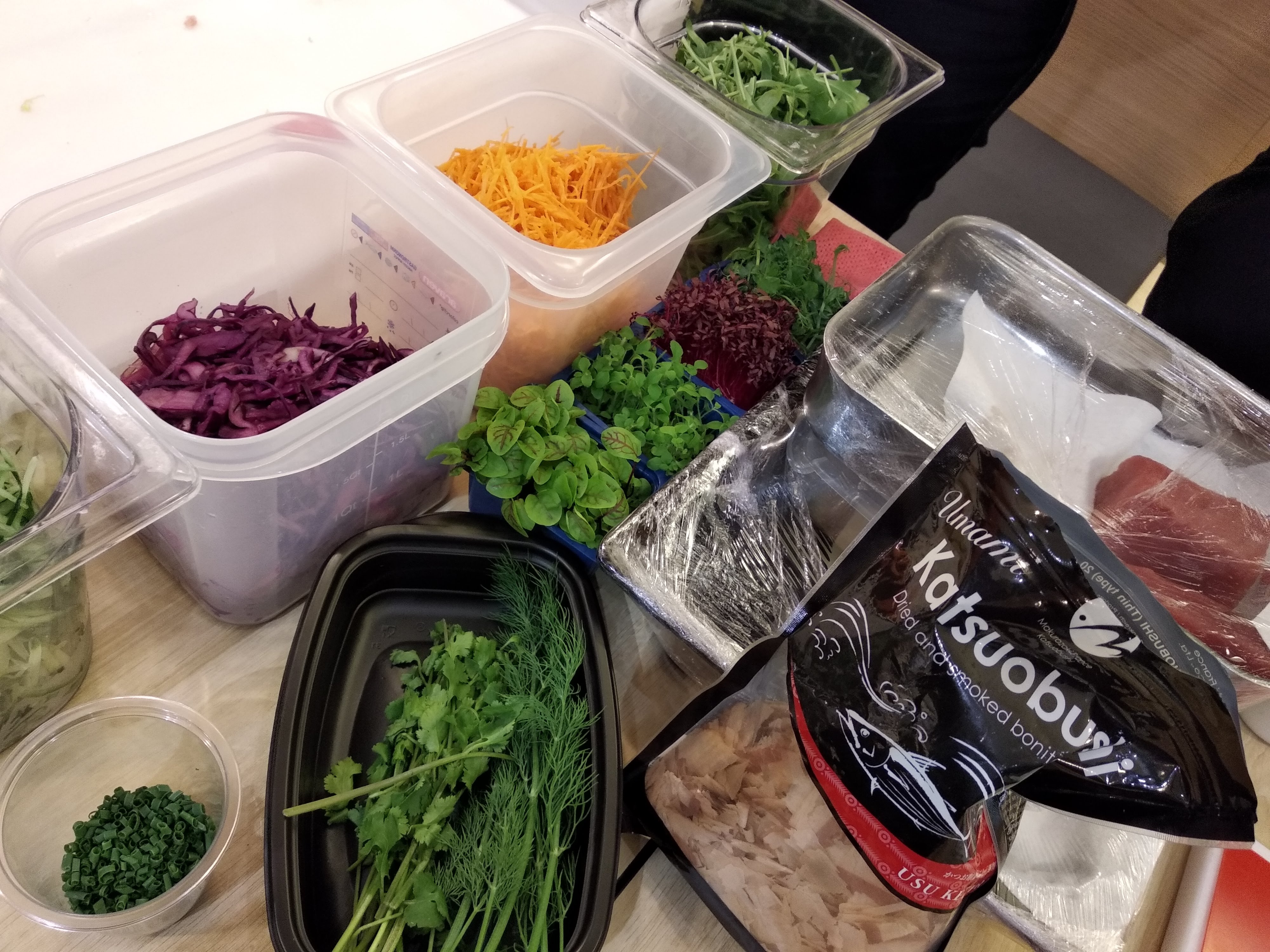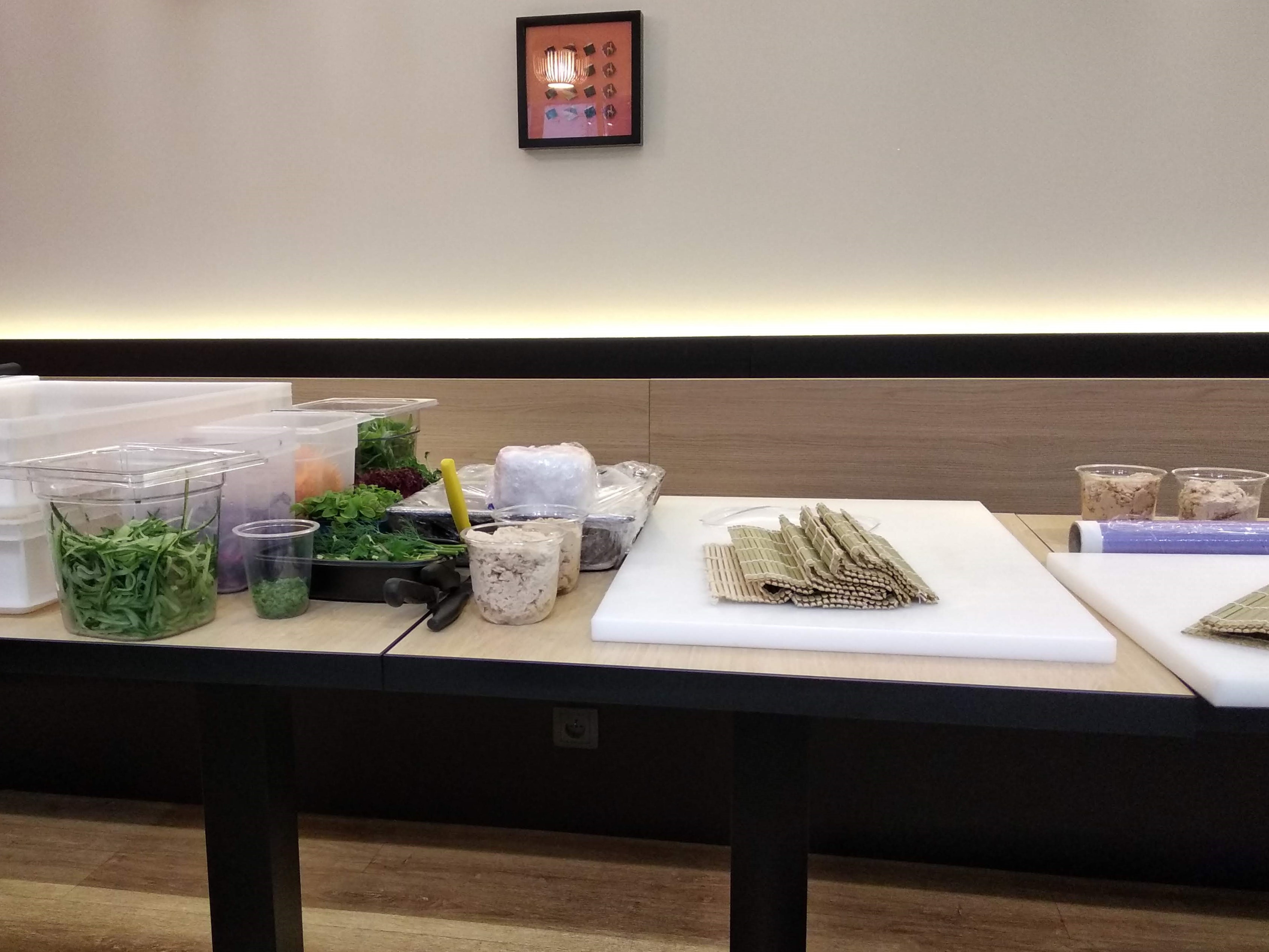 Les plats sont préparés tous les matins dans le laboratoire, à Rezé, par Anthony Guillou, chef de cuisine, assisté de 5 personnes, à partir de produits bruts et frais de chez frais, tout droit venus du MIN puis dispatchés dans les différents SUKO de l’agglomération. (Les sushis made in Nantes ! 😉)