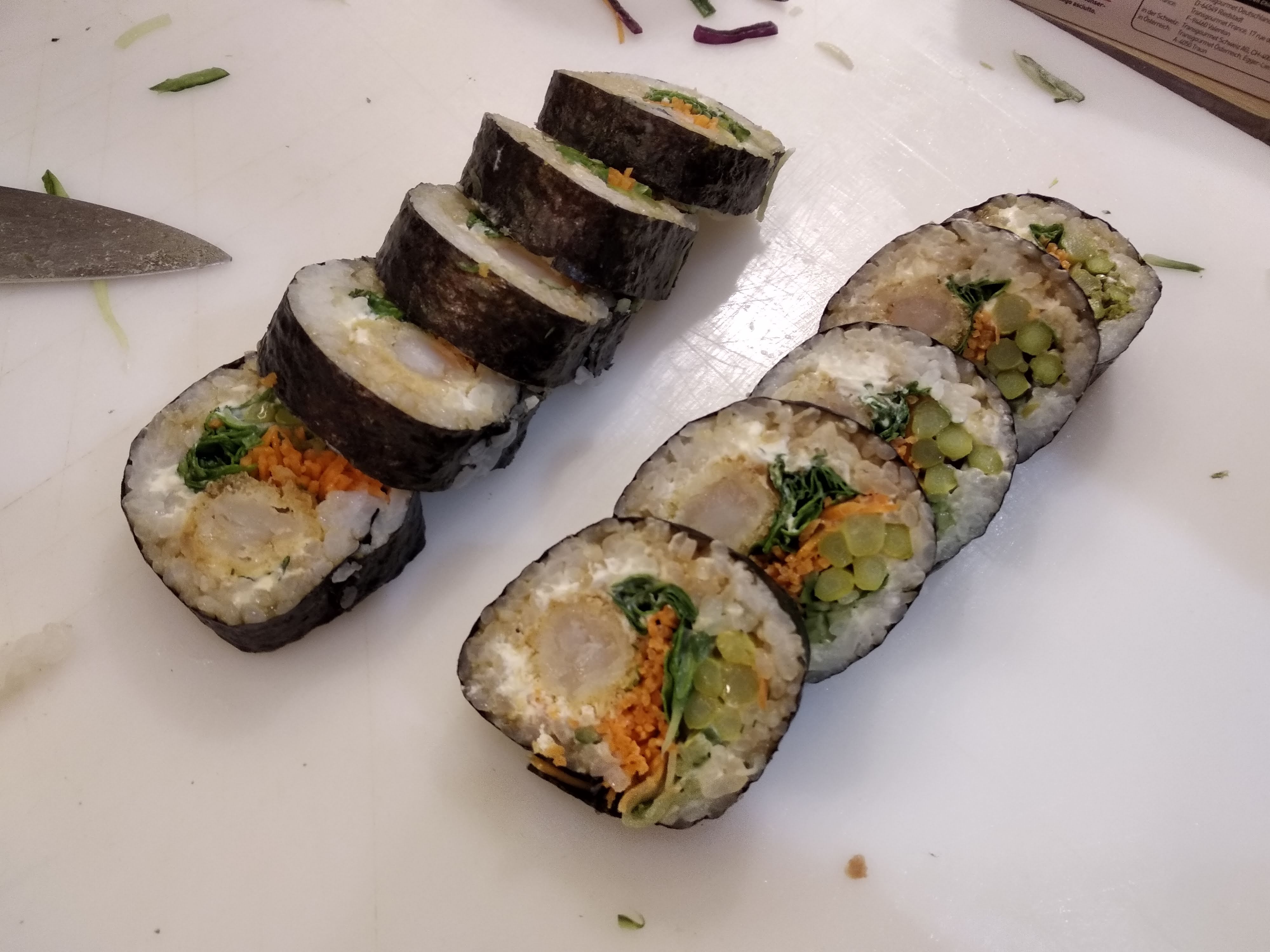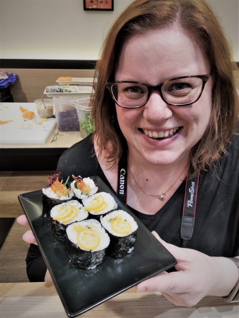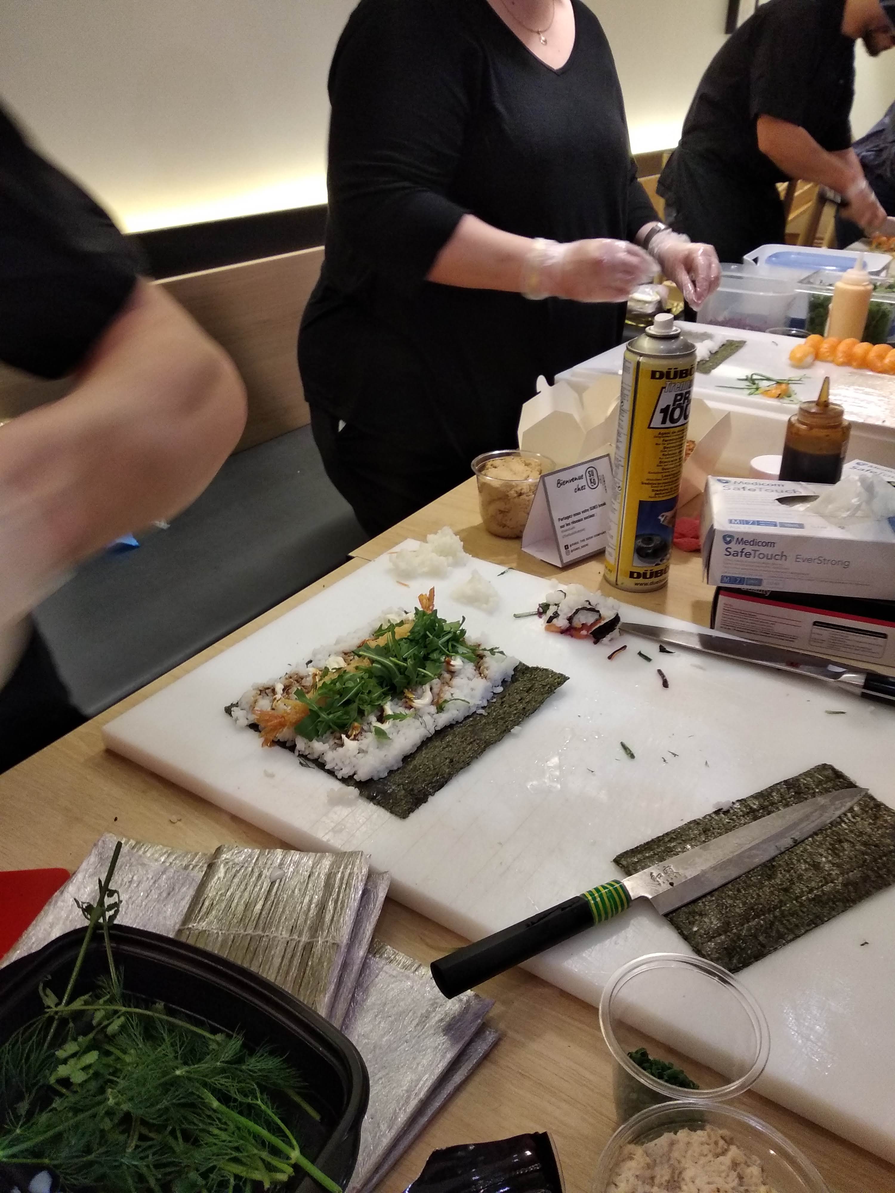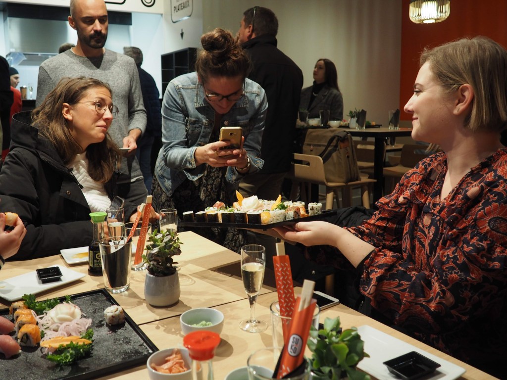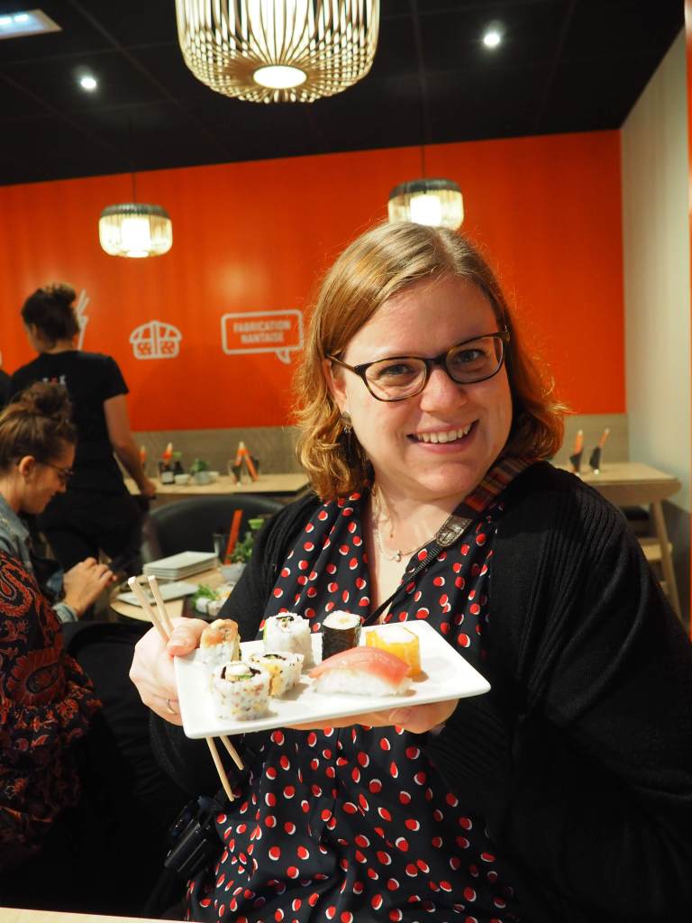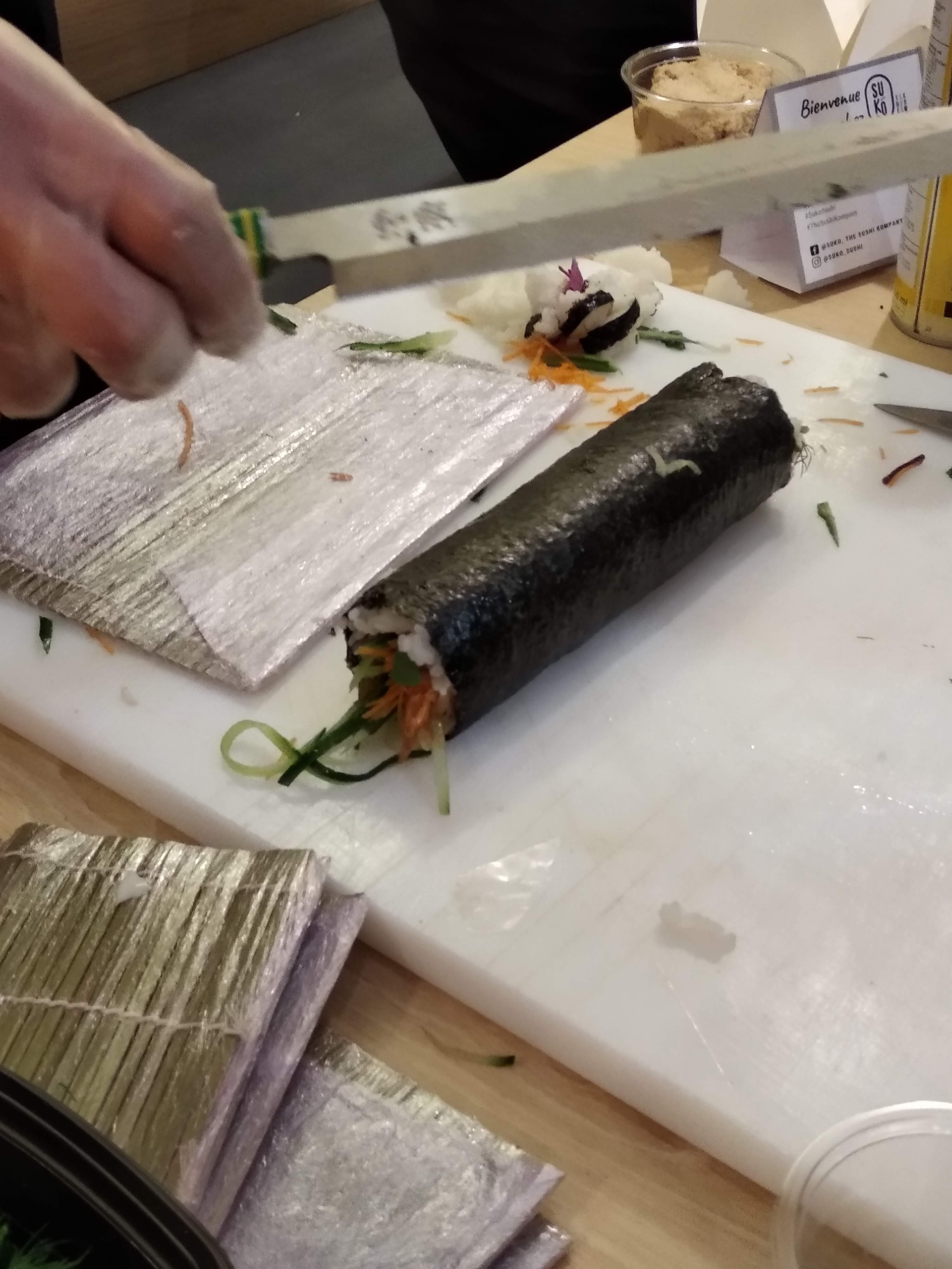 J’avais participé à un atelier création de makis et sushis avec les Blogs du 44 , en mars dernier, au SUKO de gare sud, et nous avions bien assuré, car nous avions de très bons formateurs, avec la présence d’Anthony et son équipe ! 😉 Chacun avait créé ses propres recettes, selon ses goûts, dans une ambiance très bon enfant (blagues, rires, déconnade), puis à la fin : dégustation ! (Enfin, il a fallu attendre que tout le monde fasse d’abord ses photos, et ça, croyez-moi, ça peut durer un moment ! 😉 ) On s’est régalés, et à la fin, il en restait plein, on en a même ramené chez nous 😀